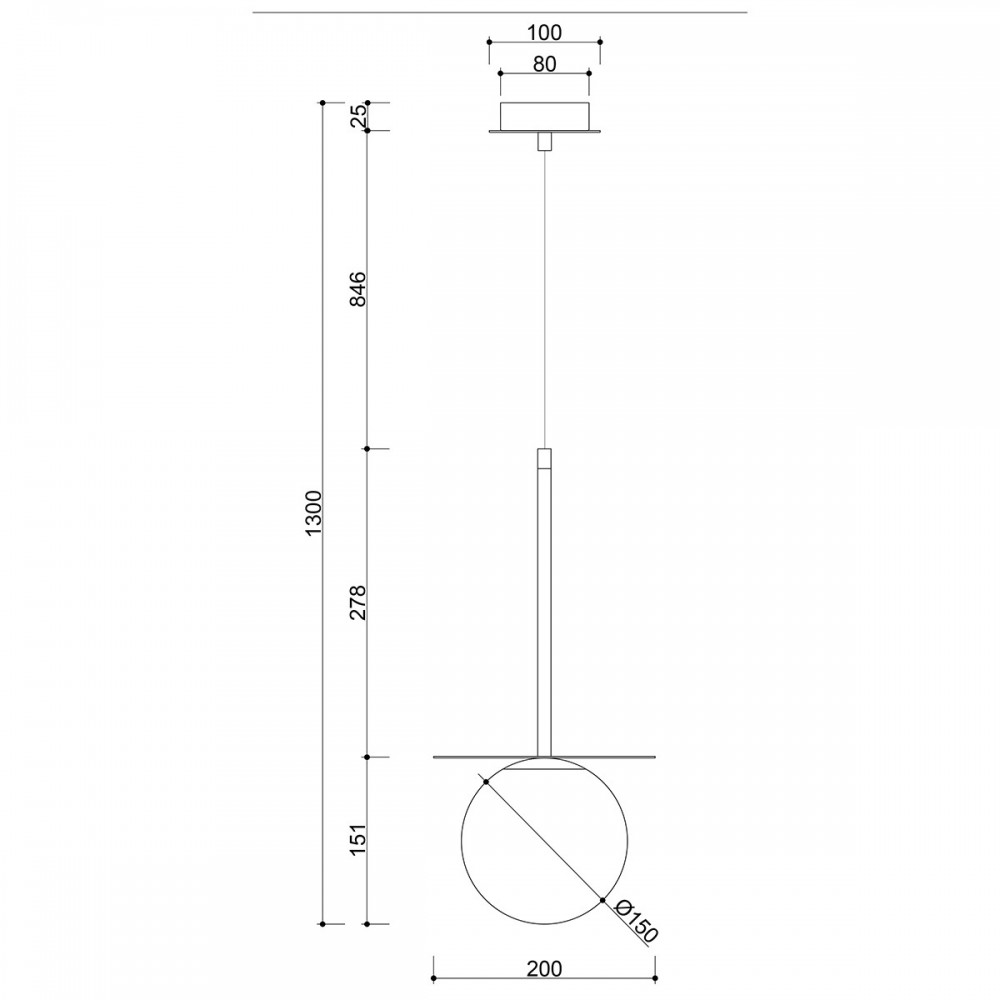 - Milky white lampshade (⌀15 cm) set on a metal disk (⌀20 cm).