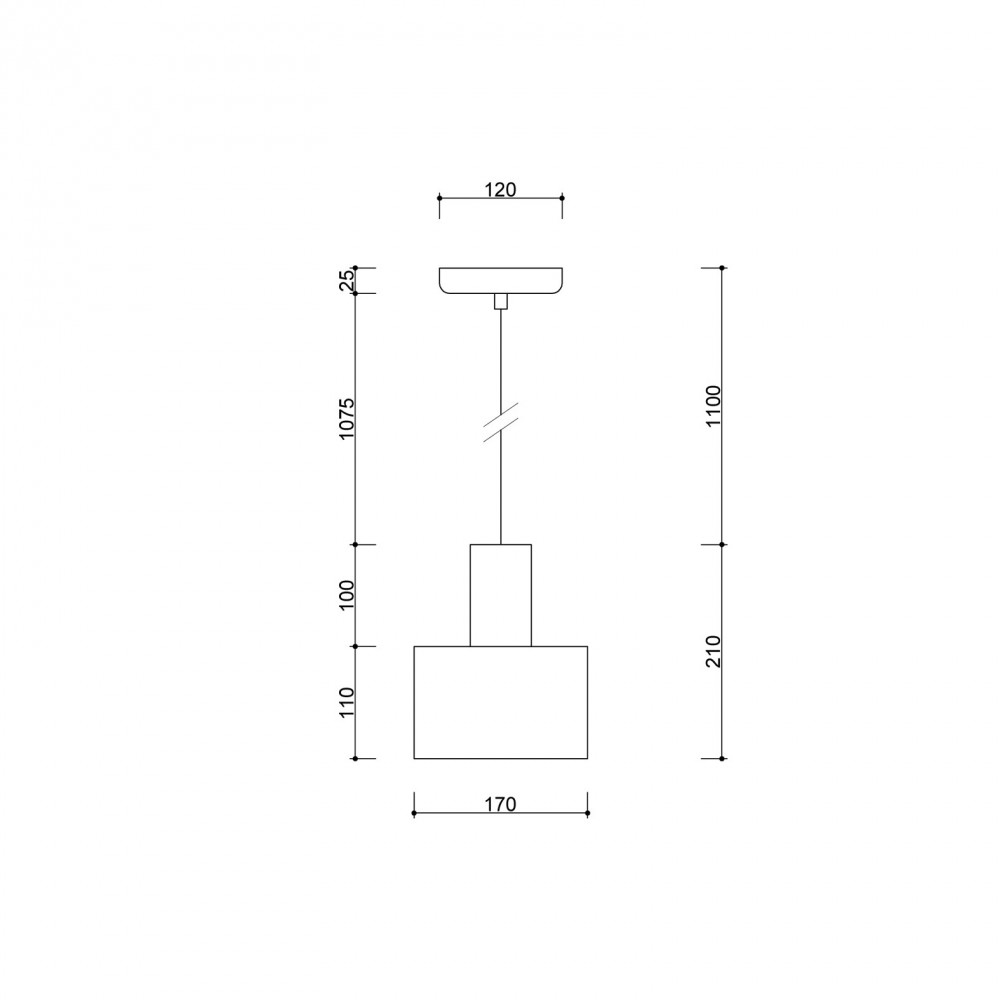 • hanging lamp, ceiling lamp • black (Jet Black RAL 9005) • material: metal • length: 17cm • width: 17cm • height: 21cm • total length: 131cm • metal lampshade in structural black color ⌀17cm • ceiling cover ⌀12cm • black polyester braided cable 107.5cm • E27 thread • max 15W LED • IP20