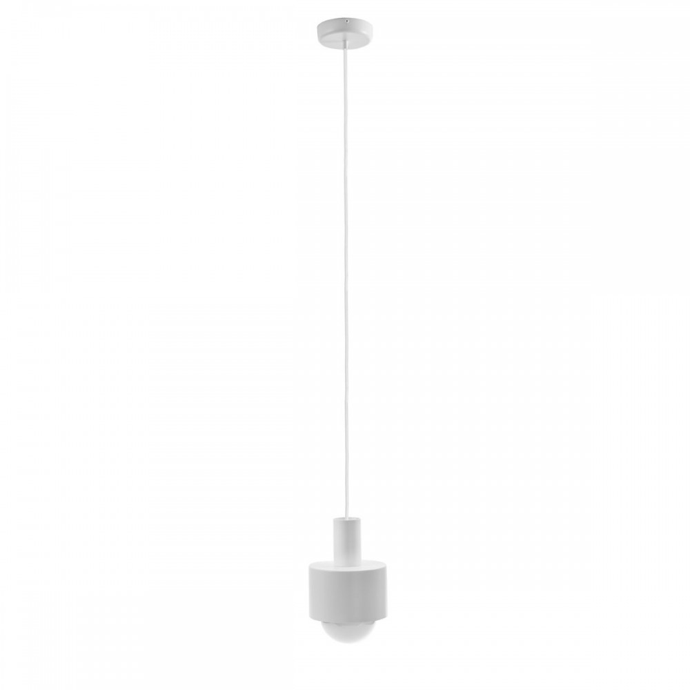 • hanging lamp, ceiling lamp • white (Signal White RAL 9003) • material: metal • length: 17cm • width: 17cm • height: 21cm • total length: 131cm • metal lampshade in structural white ⌀17cm • ceiling cover ⌀12cm • braided, white, polyester cable 107.5cm • E27 thread • max 15W LED • IP20