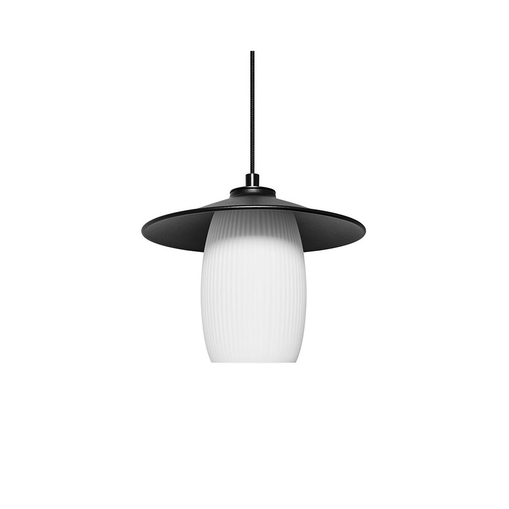• ceiling lamp, pendant lamp • black (Jet Black RAL 9005) • material metal, glass • length 25.8cm • width 25.8cm • height 23cm • total length 150cm • grooved glass lampshade in matt black • black polyester braided cable 127cm • black, metal ceiling cover 12cm • E27 thread • max 15W • IP20