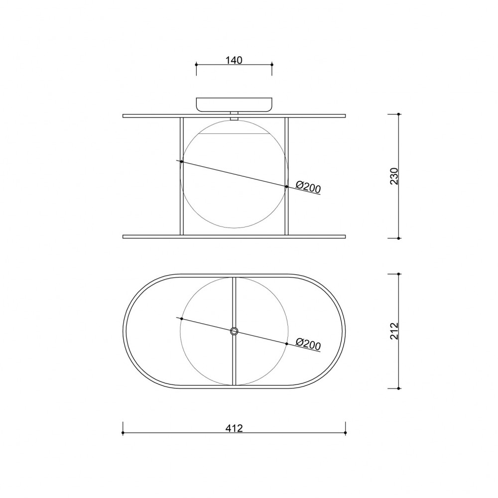 • ceiling lamp, wall lamp, plafond • height 25 cm • glass shade in white matt • metal frame and ceiling mask coated in black structural • two-core cable 2 X 0.75mm2 • max. 15W