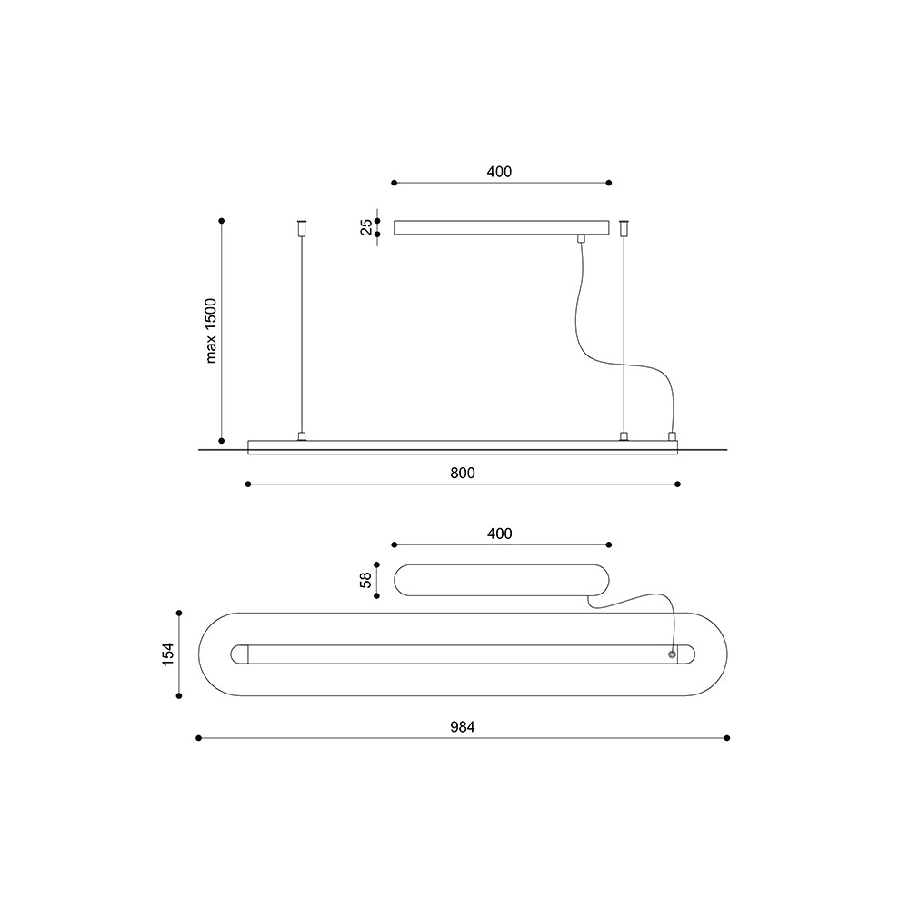 The body of the lamp is made of metal in colors from the UMMO palette: white RAL 9003, black RAL 9005, red-orange RAL 2002, olive RAL 6013, which gives it a modern and universal character. The lamp is equipped with an integrated 19.2W LED light source, available in two color temperatures: 3000K or 4000K. This allows you to customize the lighting according to your individual needs and preferences. The dimensions of the lamp are: 80 x 15,4 x 5 cm. It is suspended on thin steel cables, which further emphasizes its light and fine character. The total length of the suspension is 150 cm, which allows it to be used in various spaces.