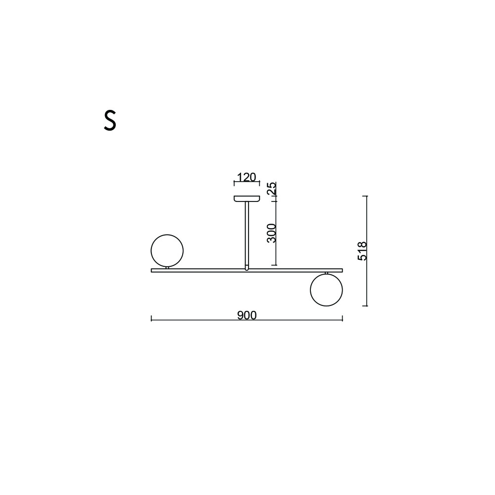 • pendant lamp, ceiling lamp • size S • black, white color • material made of metal, glass • height 52cm • width 90cm • depth 15cm • 4x white, glass shade ⌀15cm • black metal frame (height 30cm, width 90cm) • black masking frame ⌀ 12cm • G9 thread • max. 4x12W • IP44