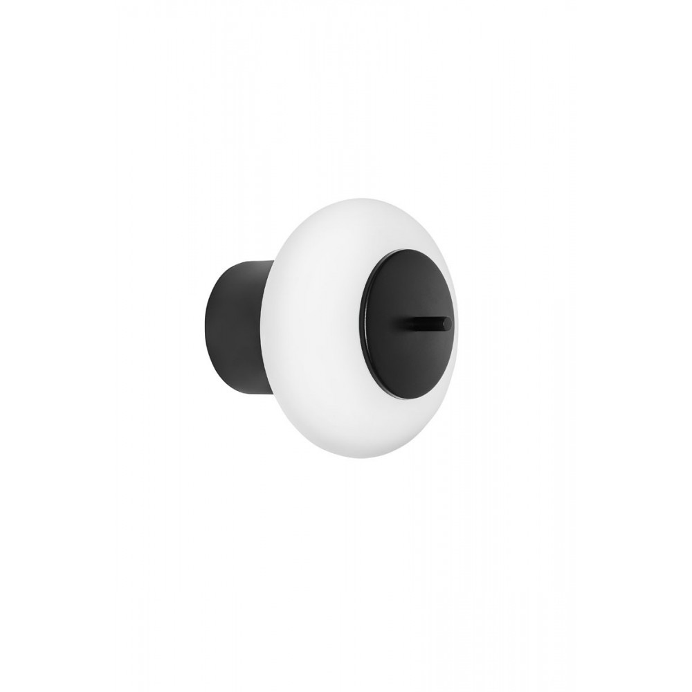 • wall lamp, wall sconce • metal / glass • black / white • depth 20.5cm • diameter 22cm • glass lampshade in white matt fi 22cm • wall mount painted in black structural color fi 12cm • two-core cable 2 X 0.75mm2 • E27 thread • max. 15W